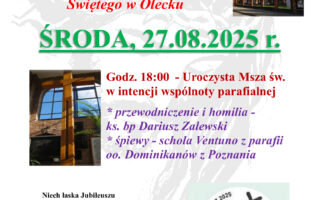 9. Na mocy dekretu Biskupa Ełckiego Jerzego Mazura z dniem 17.08.2017, funkcję proboszcza rozpoczął w naszej parafii ks. kan. Waldemar Barnak, dziekan naszego dekanatu. Bardzo serdecznie witamy go w naszej wspólnocie parafialnej, życzymy obfitości łask Bożych na czas pełnienia funkcji proboszcza. Otaczamy nowego ks. Proboszcza naszą modlitwą.