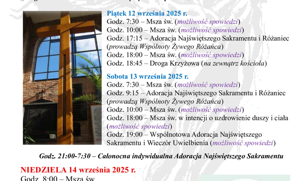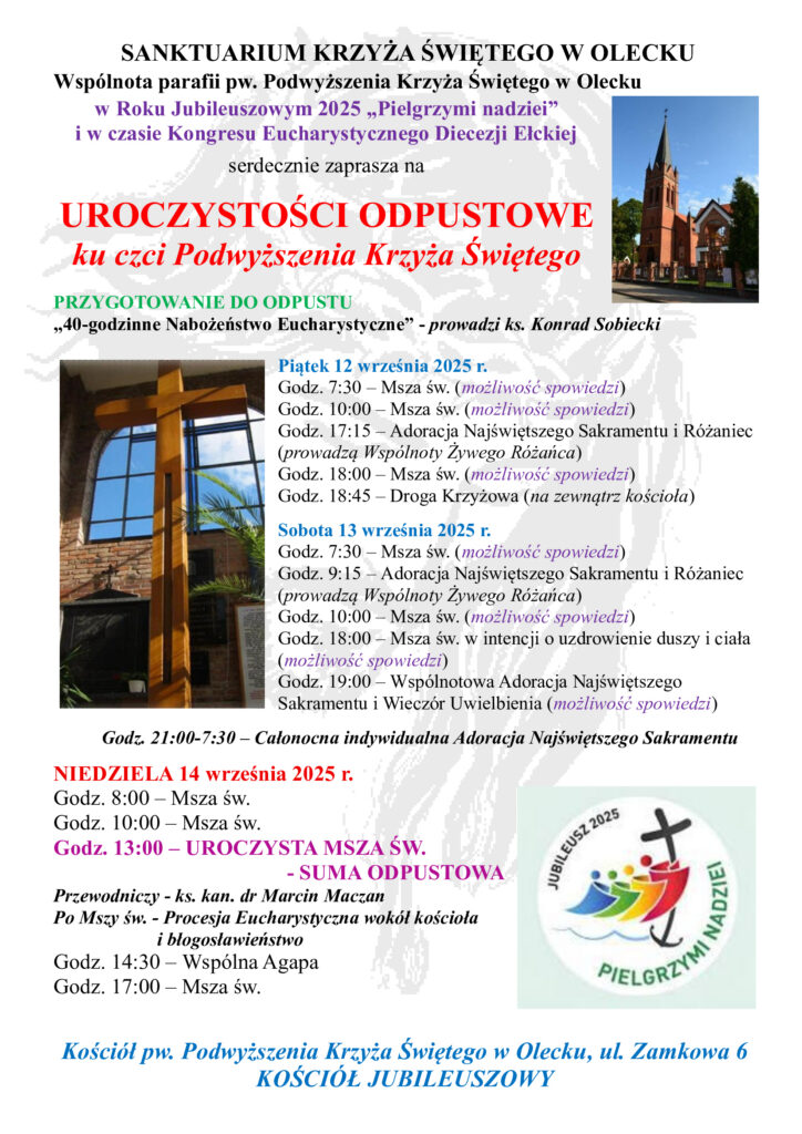 Parafian i Gości serdecznie zapraszamy do Diecezjalnego Sanktuarium Krzyża Św. w Olecku na uroczystości odpustowe ku czci Podwyższenia Krzyża Świętego!